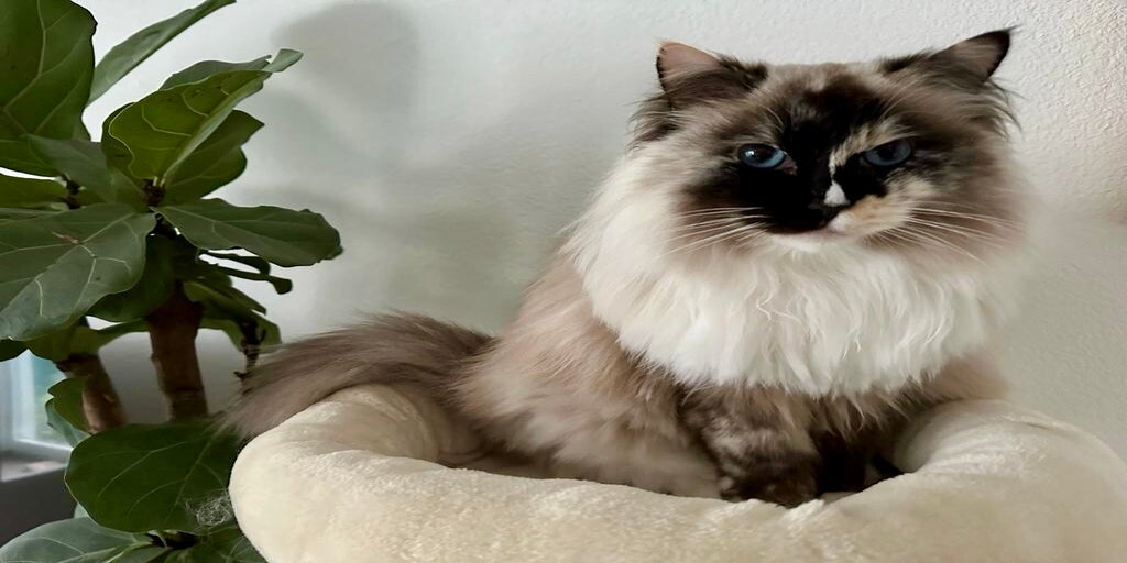 Thiara onze prachtige splitface blue Tortie Mitted ragdoll met haar uitgesproken blauwe ogen ❤️