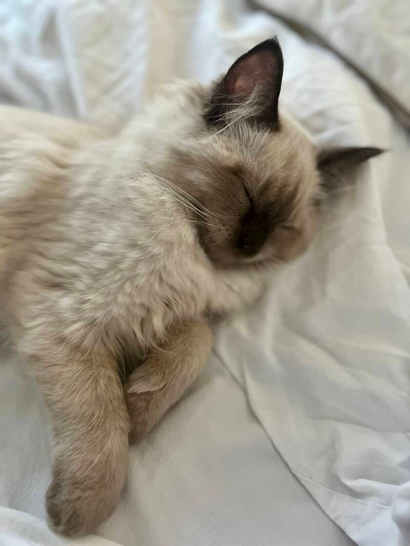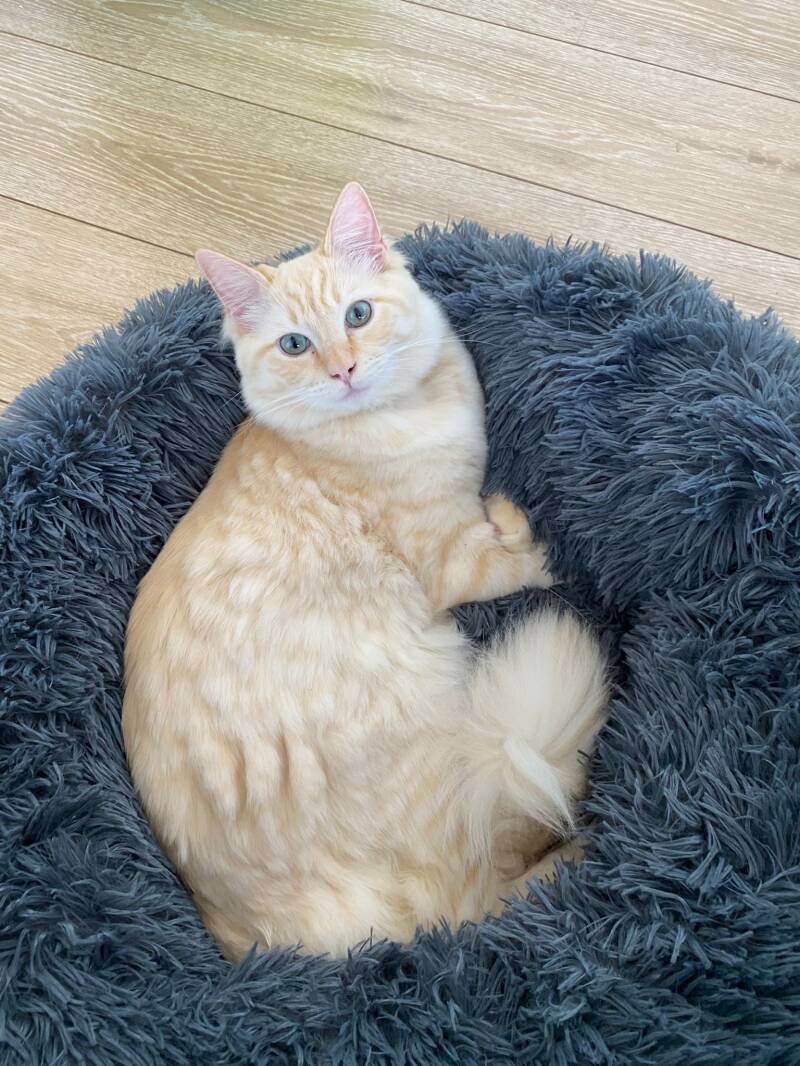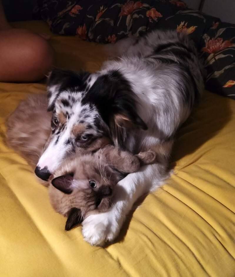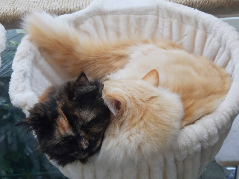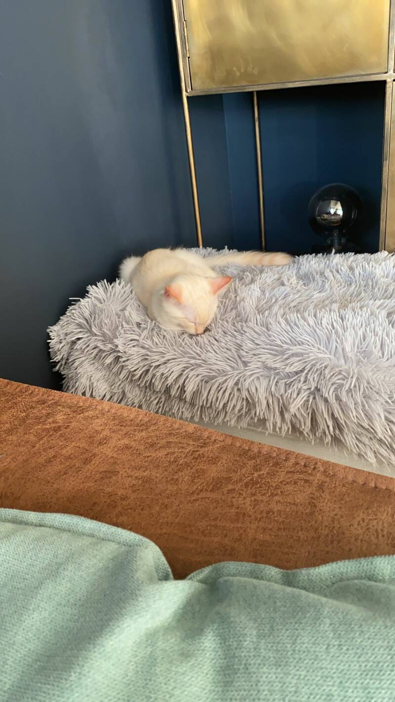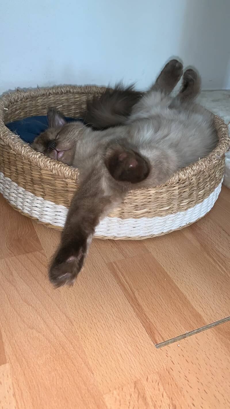 Boven Nabi ( Beau ) knuffelen met zijn baasje🥰 en lekker liggen in z'n krabmandje😻