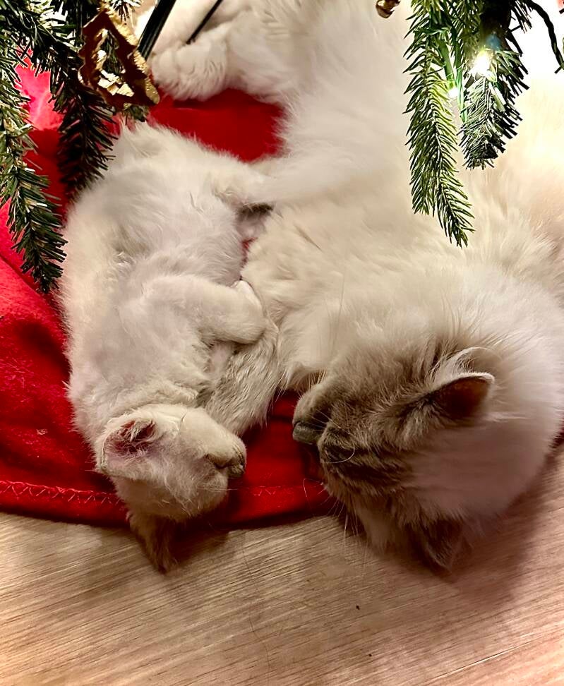 Samen slapen onder de kerstboom😴😴Aiden groot en chewy klein ❤️